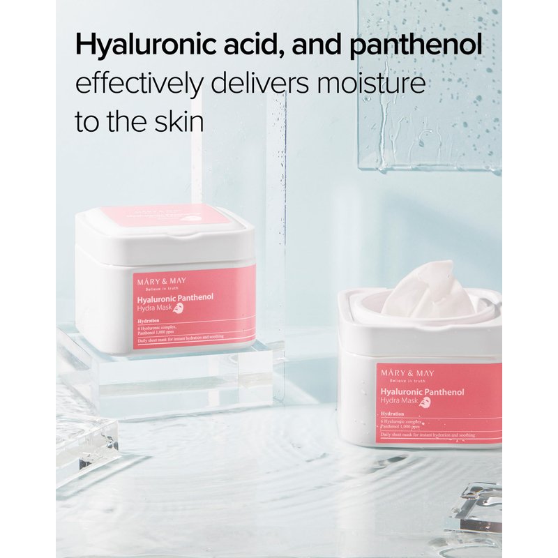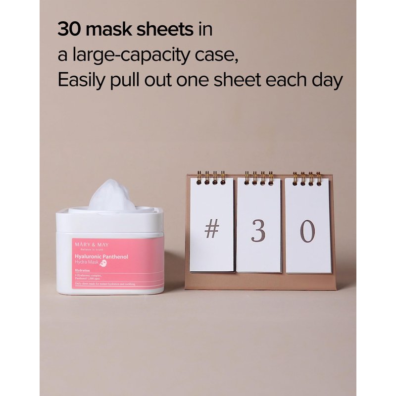 Mary&May Hyaluronic Panthenol Hydra Mask - Daily Pull Out Sheet Mask for Intense Moisturizing and Soothing - Korean Skincare, Hypoallergenic, Cruelty-Free, 30 Sheets
