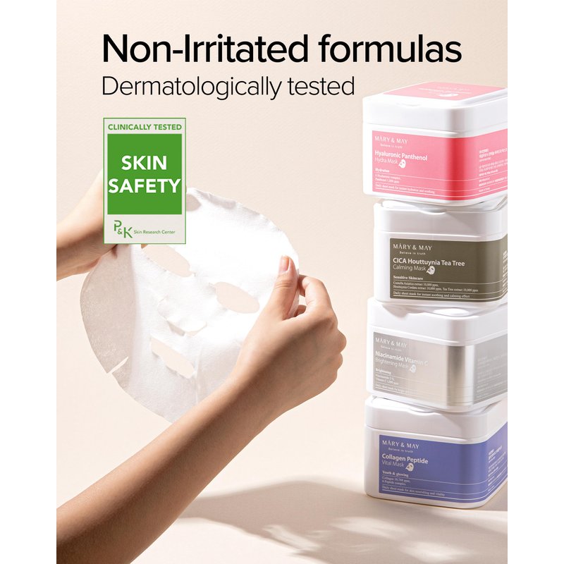 Mary&May Hyaluronic Panthenol hydra mask, which intensively hydrates dry and rough skin to make skin sooth and clear, 30 shhets/400g