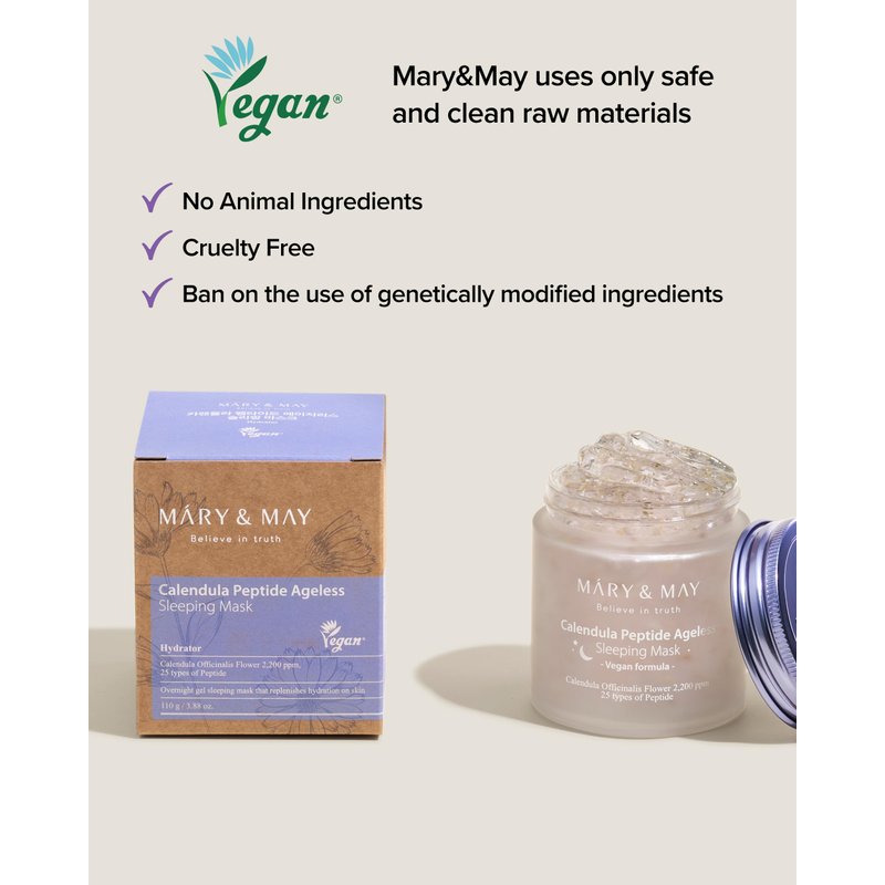 Mary&May Vegan Calendula Peptide Ageless Sleeping Mask - Overnight Hydration Face Gel Mask Korean Facial Mask - Soothing Acne, and Anti-Aging with Ceramide, Hyaluronic Acid, Cica, 3.7 fl.oz.