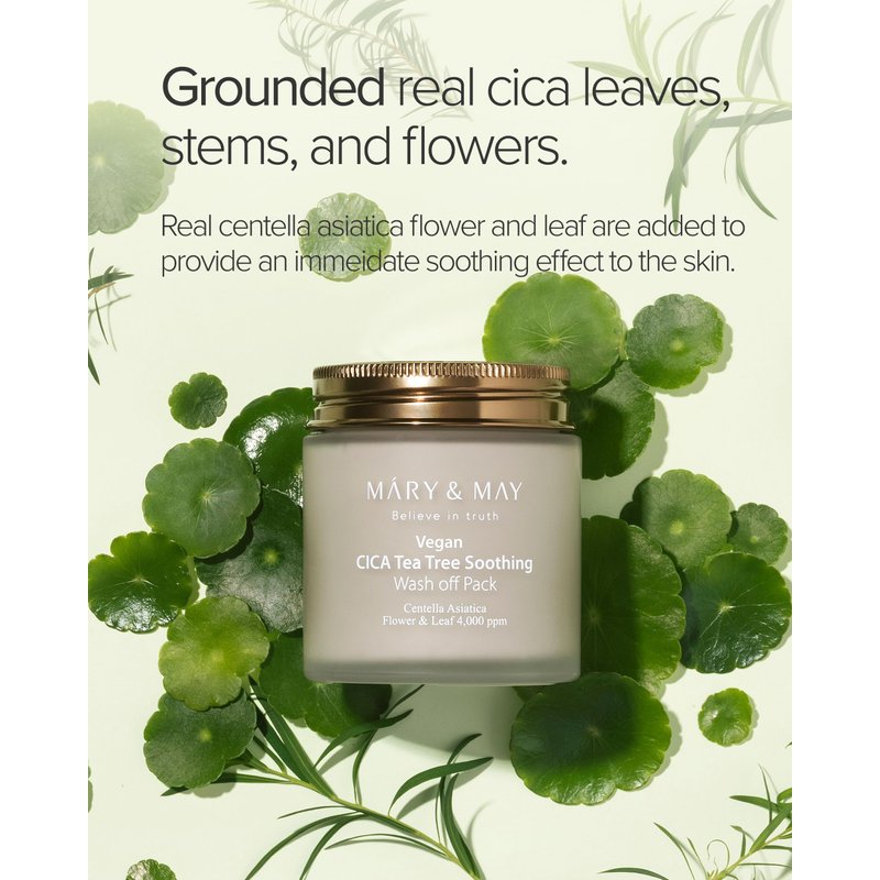 Mary&May Vegan Cica Tea Tree Soothing Wash Off Pack - Natural Centella Clay Mask for Sensitive Skin, Relieves Irritation, Cleanses Pores, and Hydrates, 4.4oz.