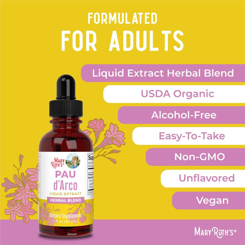 MaryRuth Organics PAU d'Arco Bark Liquid Herbal Supplement | Immune Support, Digestive & Gut Health | Echinacea, Usnea Lichen, Reishi Mushroom, Thyme Leaf | Vegan, Non-GMO | 1 Fl Oz, 1 Month Supply