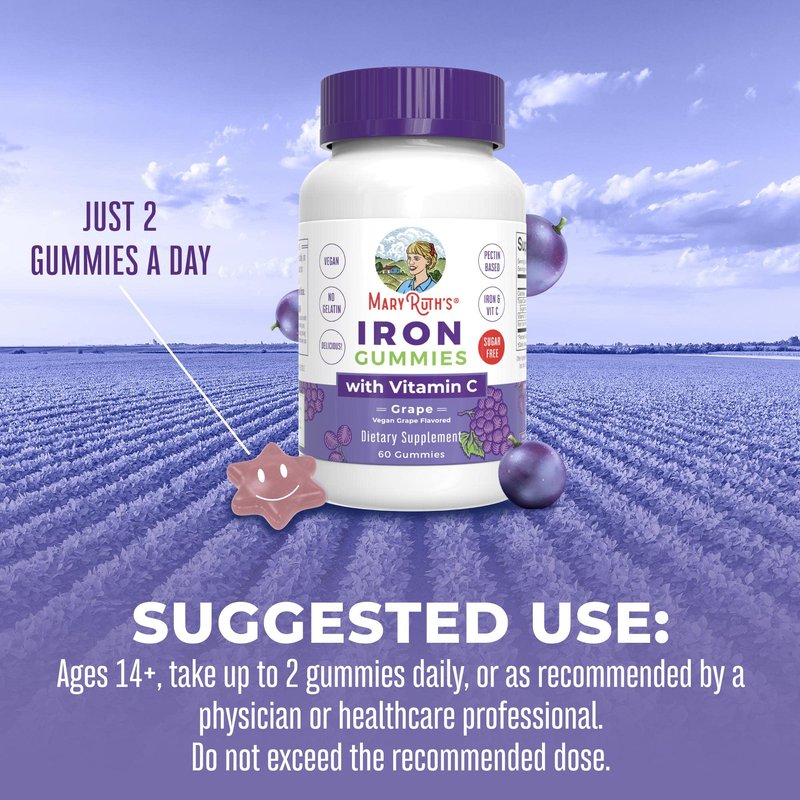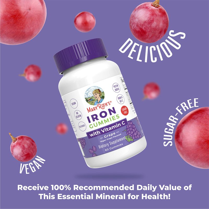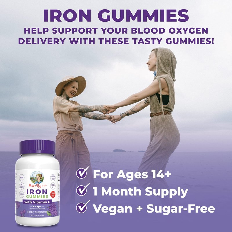 MaryRuth's Iron Suppleme nt Gummies for Adults | Sugar Free | Gummy Iron Supplements + Vitamin C for Ages 14+ | Iron Supplement for Iron Deficiency | Immune Support | Vegan | Non-GMO | 60 Count