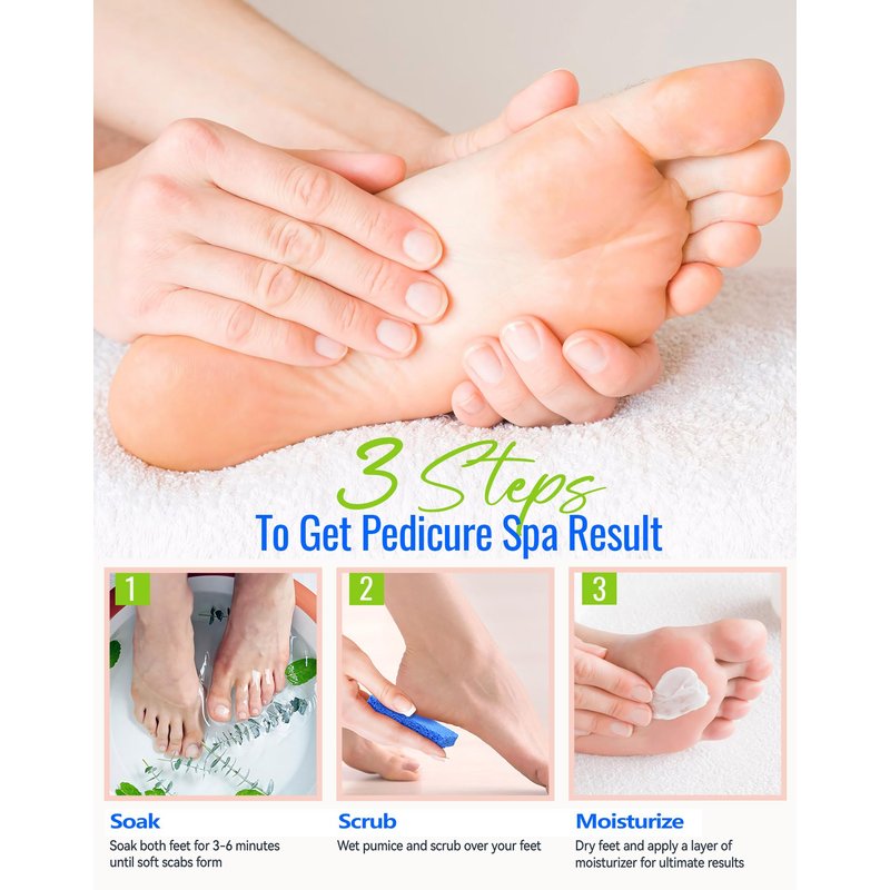 - Professional foot callus remover - Simply soak your feet and use our upgraded disposable foot scrubbers to scrub away calluses and dead skin, revealing revived and healthy feet.
