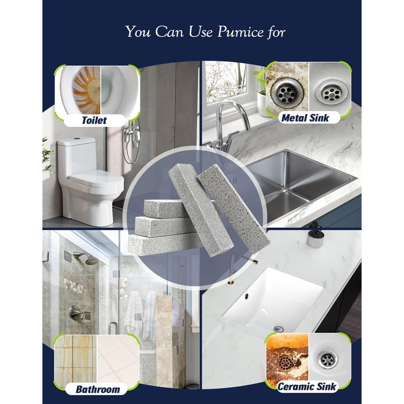 - All-purpose Cleaning Tools - Pumice sticks can be applied to clean tile, bathroom and kitchen, clear away hard water rings, clean rust from grills. Besides, use them to clean and scour away lime, calcium and rust build up from the Tile, Shower stalls, Bath tubs, Sinks, Metals, Porcelain, Stainless Steel, etc