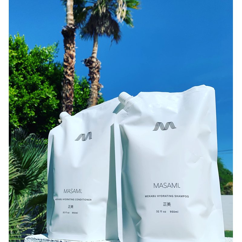 This 32 oz recyclable refill pouch is meant to replenish our Pro-Ocean sustainable bottles. MASAMI Mekabu Hydrating Conditioner is fortified by the hydrating qualities of the Japanese ocean botanical Mekabu, and enhanced with Laminaria Japonica (Kombu) seaweed, aloe vera, blueberry extract, Vitamin B and other powerful anti-oxidants. This deep yet lightweight conditioner nourishes to restore softness, shine and manageability while soothing the scalp. Benefits: Botanically hydrating Safe for color-treated hair NO parabens, NO sulfates, NO phthalates NO animal testing (cruelty-free) Vegan Gender neutral