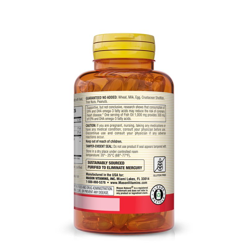 Mason Natural, Omega 3 Fish Oil 1000mg Softgels, Bonus Size 200-Count Bottle, Dietary Supplement Supports Heart, Eye, Brain and Joint Health with Omega 3 Fatty Acid Healthy Fats