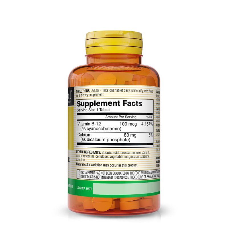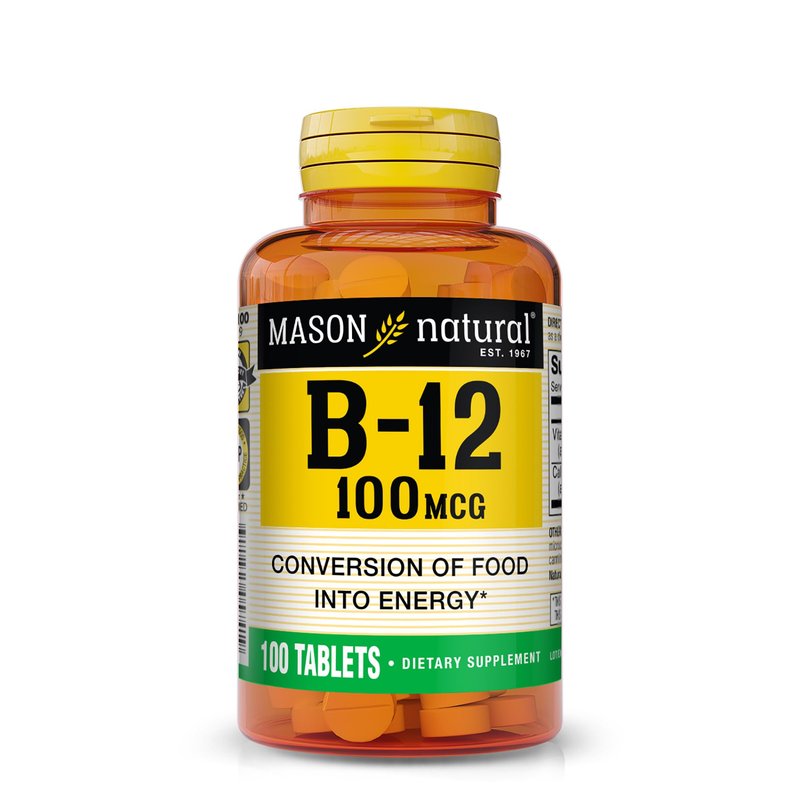 - Mason Natural Vitamin B12 tablets contain 100 mcg of B12 that may help support the normal function of the cardiovascular, pulmonary, and central nervous systems.
