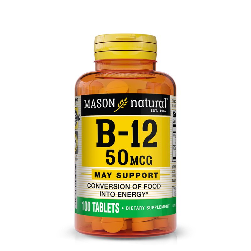 MASON NATURAL Vitamin B12 50 mcg with Calcium - Healthy Conversion of Food into Energy, Supports Nerve Function and Health, 100 Tablets
