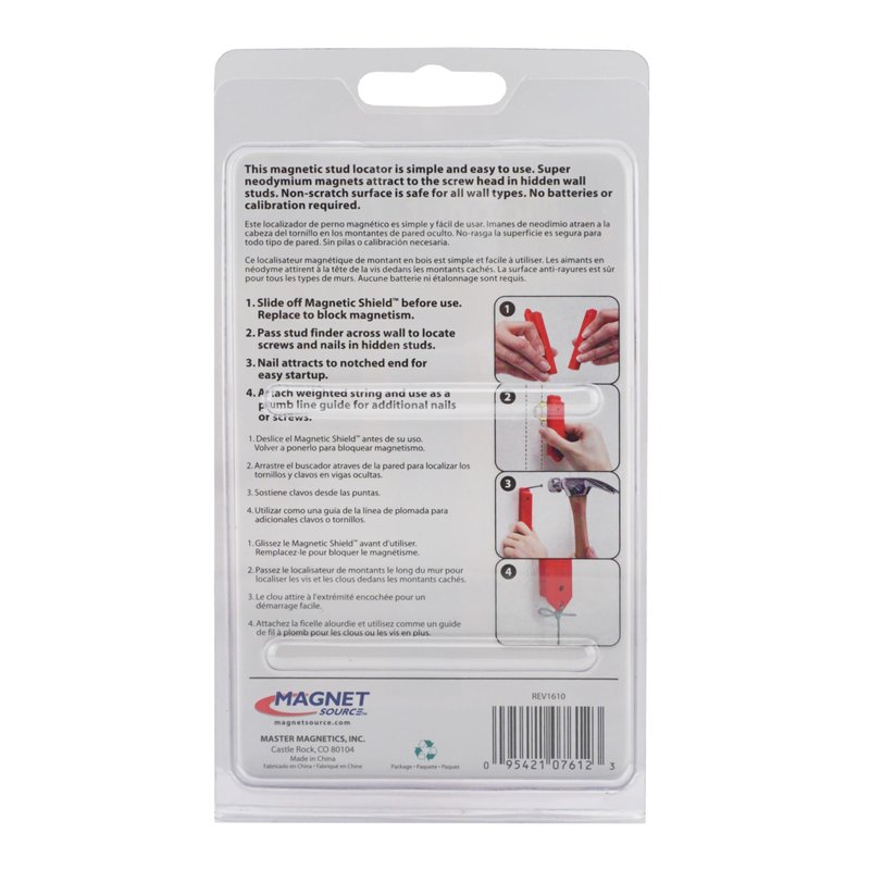 Master Magnetics 07612 Magnetic Stud Finder with Shield, Drywall Screw and Nail Locator, Red