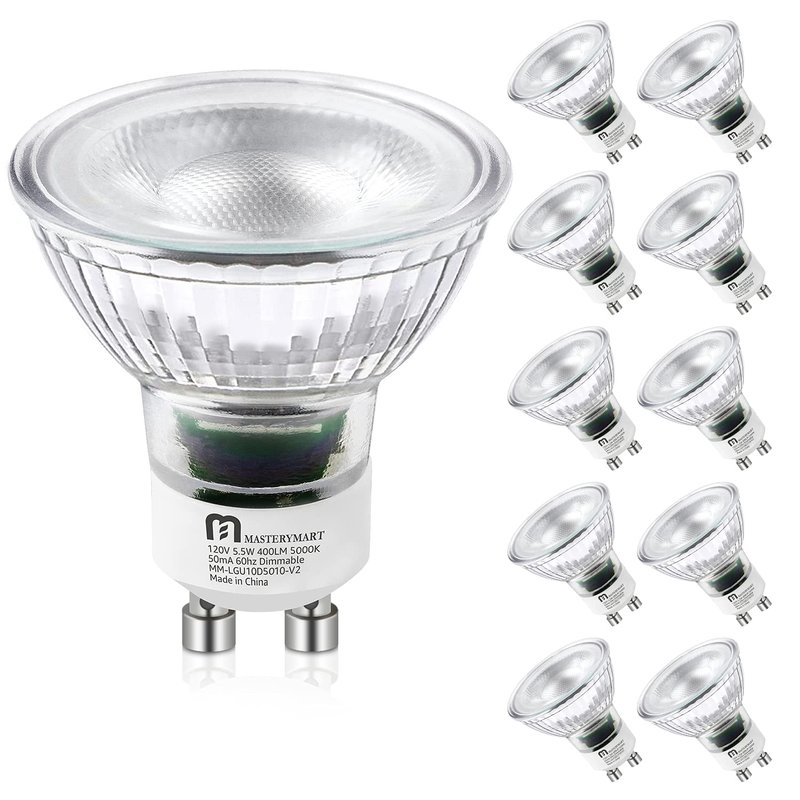 MASTERY MART LED GU10 LED Light Bulbs, 50 Watt Halogen Equivalent, 5.5W Dimmable, MR16 Spot G10 LED Flood Light Bulbs Replacement for Recessed Track Lighting, 5000K Daylight White, 10 Pack