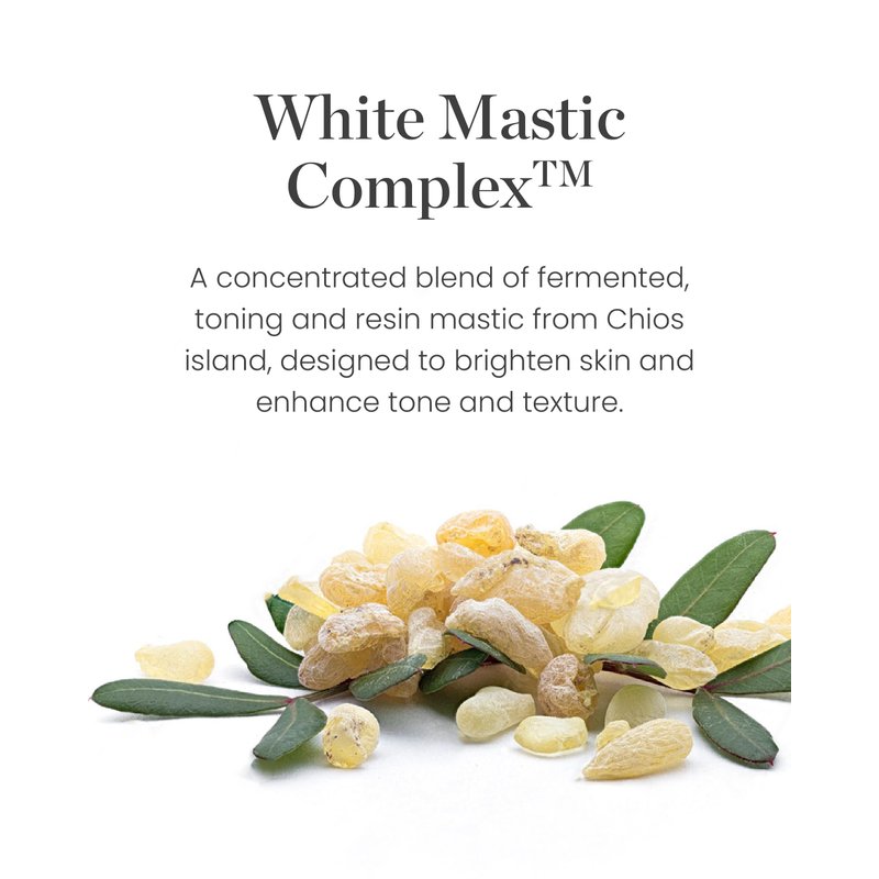 - MAGIC OF MASTIC - Experience the power of White Mastic Complex. This unique blend of Mastic Gum, Fermented Mastic, and Toning Mastic, patented by Mastina, supports the appearance of clear skin tone, helps to skin's natural smoothness for a truly skincare experience.