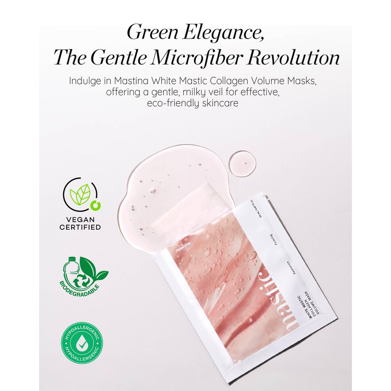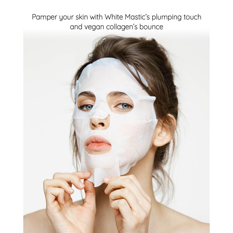 - MASTINA WHITE MASTIC COLLAGEN VOLUME MASK (20ml/0.67fl oz x 4 pieces) - Indulge in the ultimate self-care with our White Mastic Collagen Volume Mask. This skin radiance-boosting and firming sheet mask is a powerhouse of skin-revitalizing ingredients, delivering a spa-like experience to revive your tired and sagging skin. Unveil a more radiant and resilient complexion with every use.