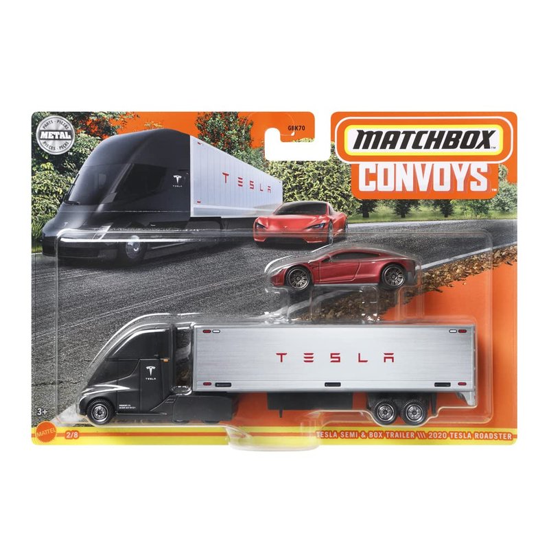 What's included?Tesla Semi & Box Trailer and 2020 RoadsterThe Convoys Collectible Cars Die-cast Series Tesla Semi & Box Trailer and 2020 Roadster features exciting themes for kids to create and drive their own adventures.