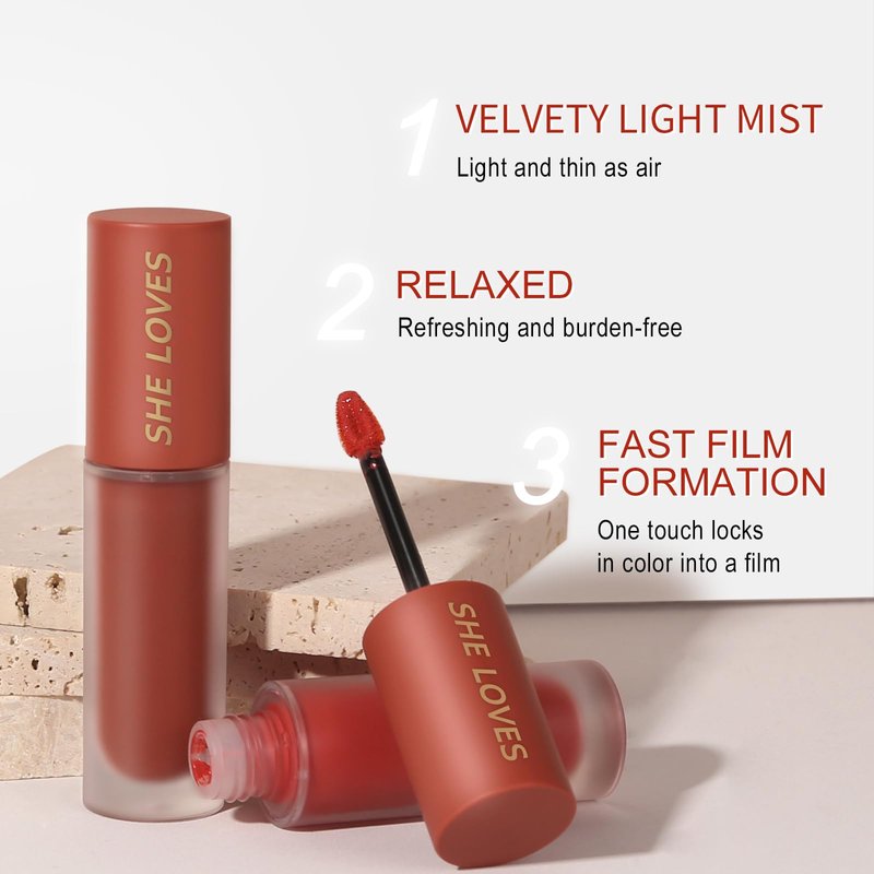 - ✺【Velvety Mousse Lip Mud】Mist matte lipstick uses an unprecedented "mud" texture. It is not the liquid used in ordinary lip glaze, but the semi-solid "mud". Lip mud looks dry, but it is really silky and dense. Very stretchable. The mud texture is thinner and more translucent, easily creating an airy soft mist lip makeup.