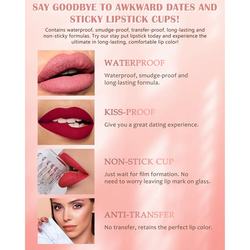 1. The Matte Liquid Lipstick is stronger waterproof, non-sticky, long lasting, smooth and high-pigmented.