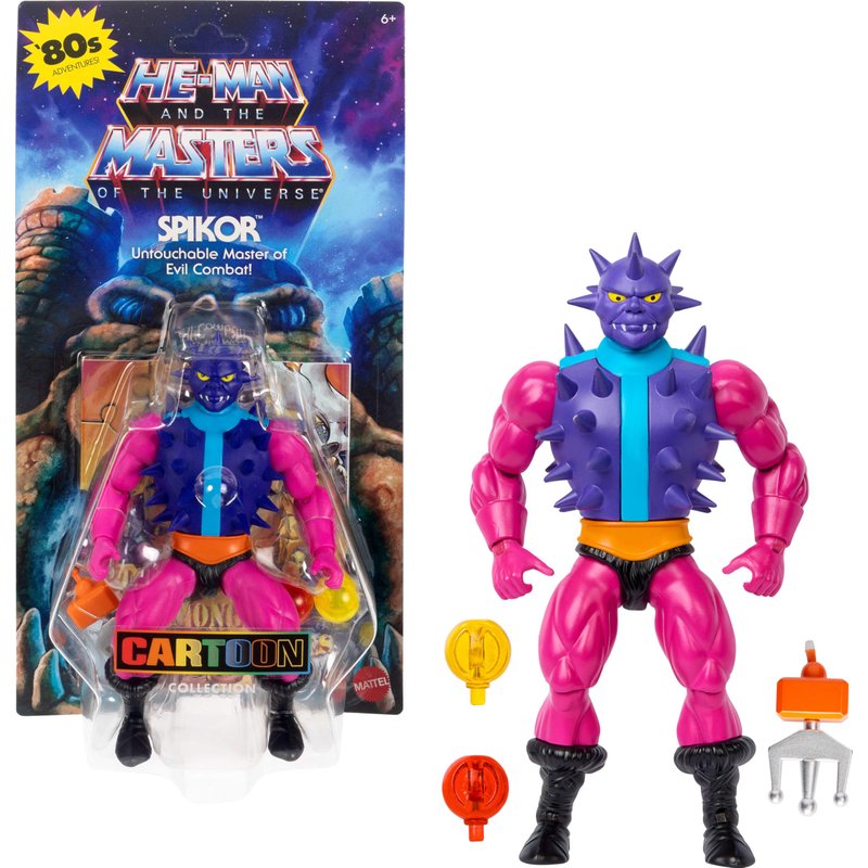 - This MOTU Origins Cartoon Collection Spikor figure will bring back fond memories of the 1980s with his content-accurate look. Removable head and harness provide mix-and-match possibilities!