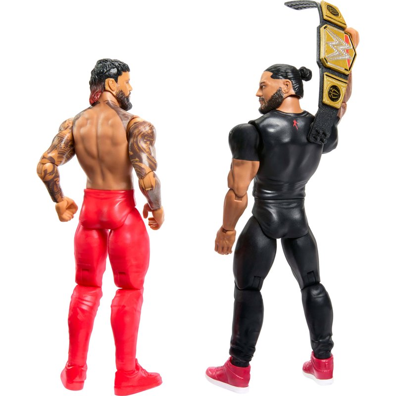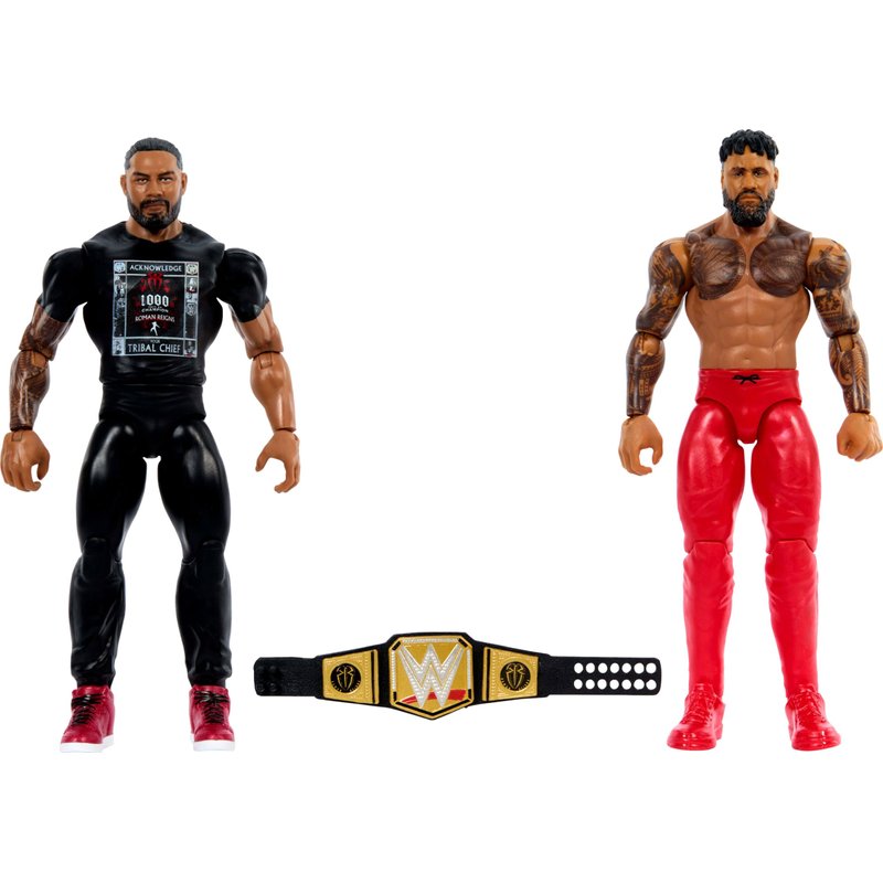 Mattel WWE Main Event Championship Showdown 2-Pack Action Figures & Accessory, Series Roman Reigns vs Jey USO Collectible Set