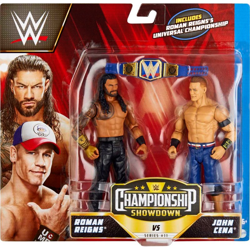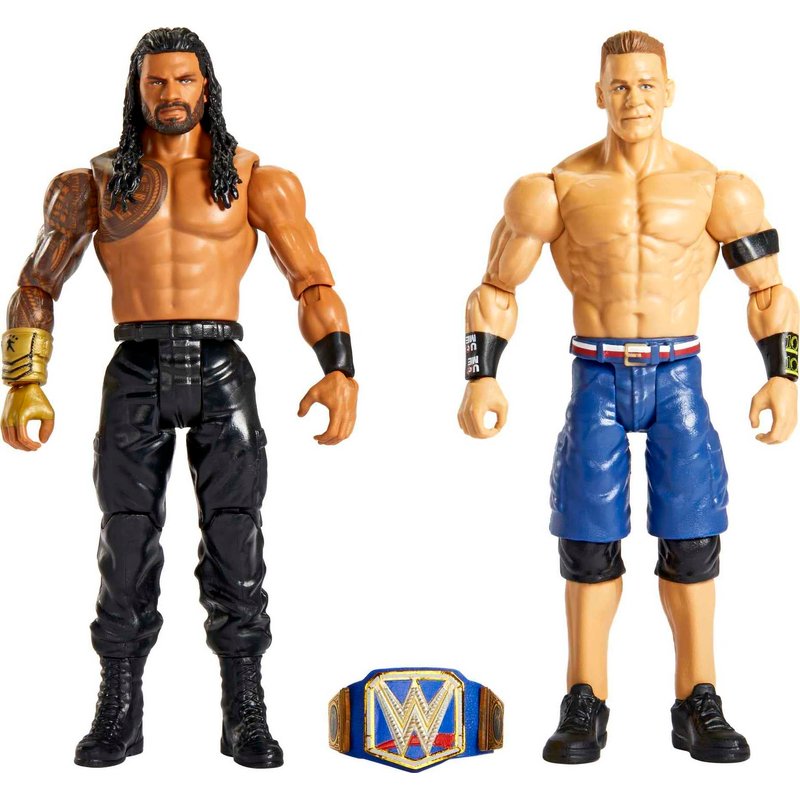 Mattel WWE Roman Reigns vs John Cena Championship Showdown Action Figure 2-Pack with Universal Championship, 6-inch