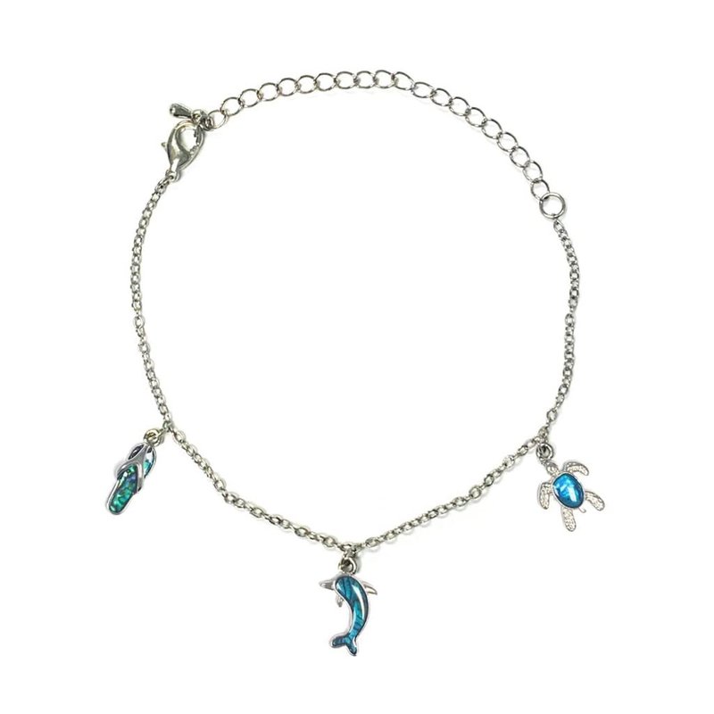 Maui Babe Browning Lotion 8oz & Beach Abalone Anklet - Turtle, Flip Flop and Dolphin Adjustable Anklet - Get a dark rich tan fast by using Maui Babe Tanning Lotion. Maui Babe formula in the browning lotion accelerates the tanning process, yielding a beautiful natural tan. Seal, heal and protect your tan from fading afterward with maui babe after browning lotion (After Sun). Enjoy sunbathing with “A Local Secret". Aloe in the Maui Baby Brown Lotion helps moisturize and protect while the other ingredients help promote a deep, dark, long lasting tan with just a short time in the sun. Ingredients: Light Mineral Oil, Kukui Nut Oil, Antioxidant Vitamins E, C & A, Kona Coffee Plant Extract, Aloe, Potassium Iodide. Made in Maui, Hawaii. This lotion doesn't contain SPF and it is recommended you apply sunscreen ten minutes before applying Browning Lotion. Shake the bottle well before use and re-apply often.