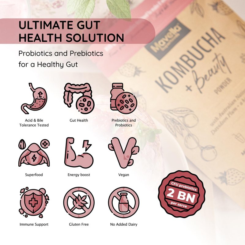 - Probiotic-Rich Formula - Boost your gut health with our kombucha powder, packed with probiotics to support your digestive system. With 2 Billion CFU probiotics per serve. Promote metabolism and maintain a healthy microbiome