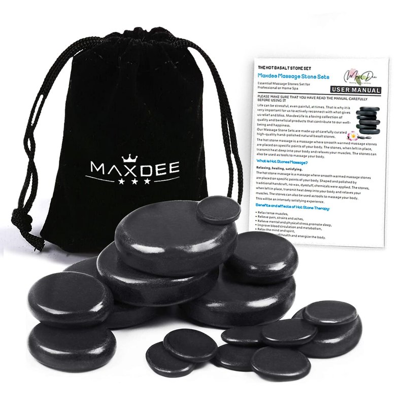 Maxdee Massage Stones Essential Hot Stones for Massage, 6 Medium Hot Stones Massage Kit Hot Rocks Massage Stones for Professional or Home Spa, Foot Heater, Relaxing, Healing, Pain Relief, 2.4"