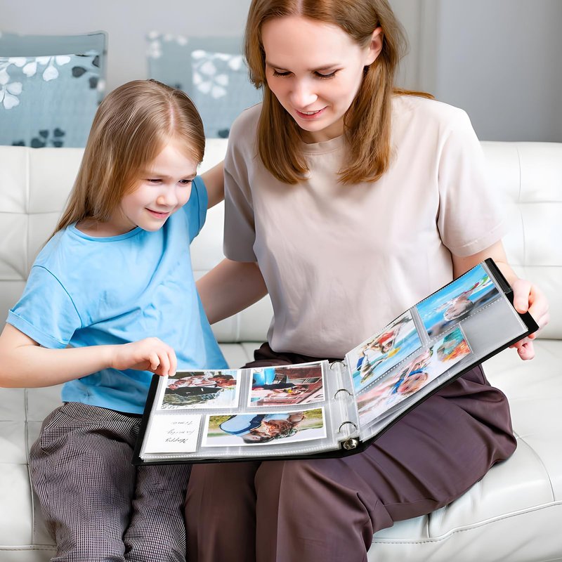 - Top Loading: Top loading photo sleeves design makes it easy to insert and remove photos or cards. And top-loading designed photo protector pages can make sure photos or cards won't fall out.