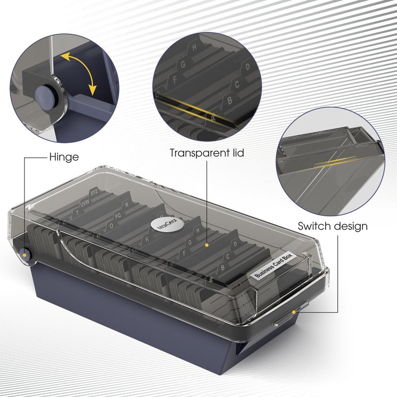 - Careful Design: The transparent lid of the business card storage box can be opened easily for you to access your business cards at any moment. And the lid will keep dusts away to protect your business cards.