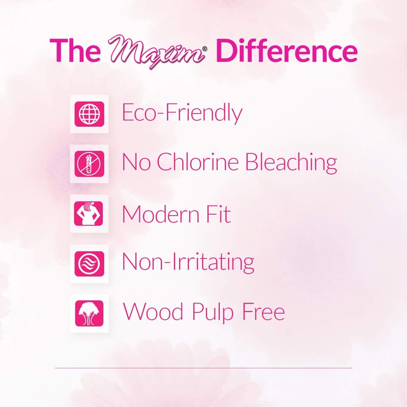 The perfect sanitary pad should provide maximum comfort and protection. That’s what these organic cotton contour pads deliver. Maxim’s modern design with innovative leakage control channels allows you to go about your day with peace of mind knowing that you’re protected against leaks and accidents as well as treating your body with the finest natural materials. These organic regular pads provide enough protection to be used throughout the day.