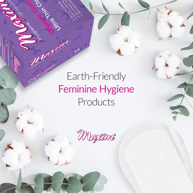 Maxim Hygiene offers healthy, sustainable hygiene products that are safe for your body and the environment. What looks like Cotton in other products is not always 100% Cotton. Wood Pulp and Synthetics that may be bleached with Chlorine are often used as a substitute in conventional women’s hygiene products. All Maxim products are made with 100% Organic and Natural Chlorine-Free Cotton to help reduce the risk of irritation, minimize the body's exposure to chemicals and feel softer.