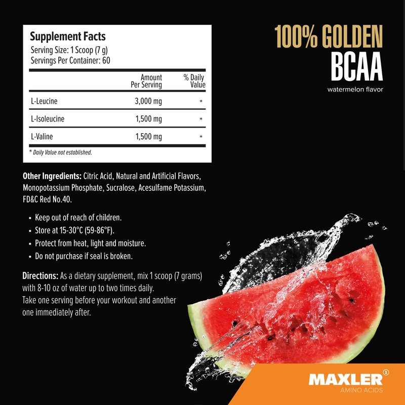 Maxler 100% Golden BCAA Powder - Intra & Post Workout Recovery Drink for Accelerated Muscle Recovery & Lean Muscle Growth - 6 g Vegan BCAAs Amino Acids - 60 Servings - Watermelon