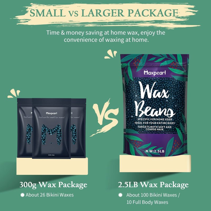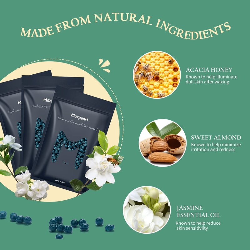 - LESS PAINFULL HARD WAX: Waxing does not have to be painful or sore. Maxpearl hard wax beans designed to only grab and remove hair and not the skin makes this the perfect wax for coarse and short hair, intimate hair and sensitive skin. Its gentle formulation minimizes skin irritation, redness, and pain by maximizing waxing comfort.