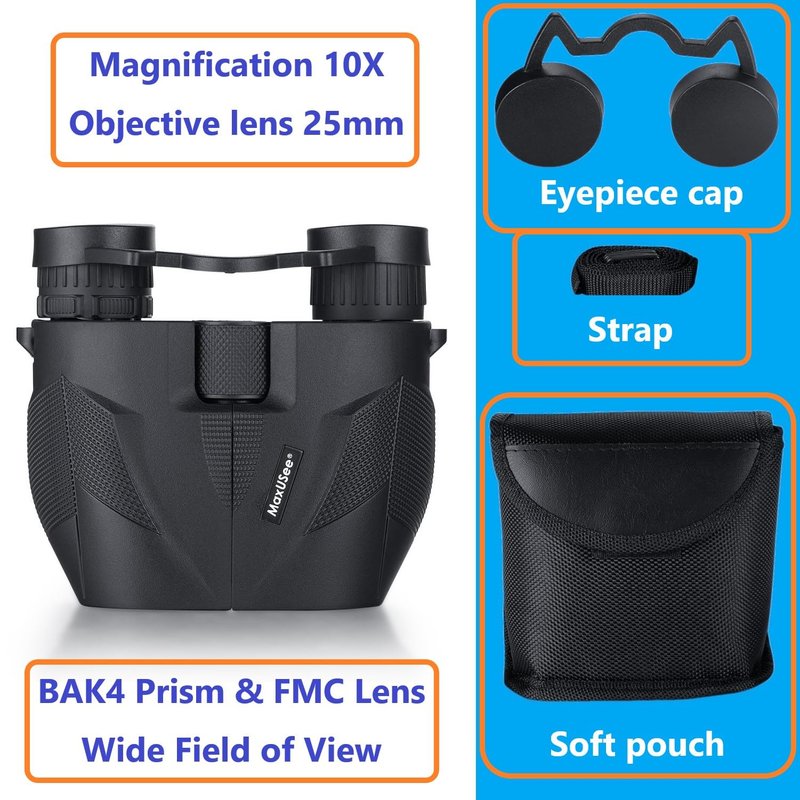 MaxUSee 10X25 Compact Binoculars for Adults and Kids, Easy Focus HD Vision Binoculars for Travel, Sightseeing, Bird Watching, Concerts and Sport Games