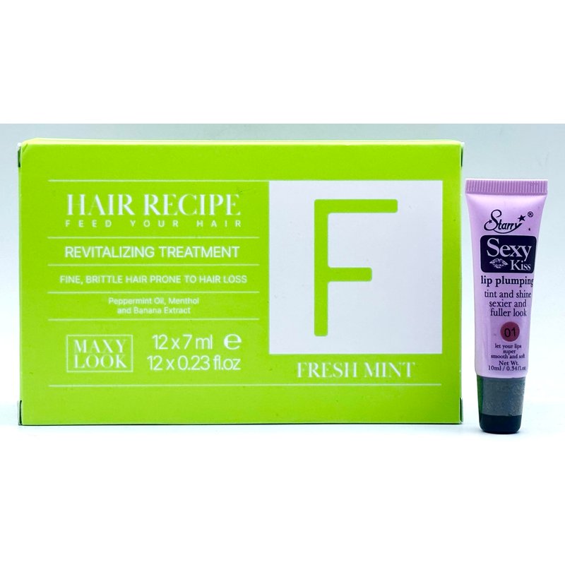 Maxy Look Hair Recipe Feed Your Hair Revitalizing Treatment Phials for Fine Brittle Hair (Fresh Mint) 12x7ml-Free Starry Lip Gloss