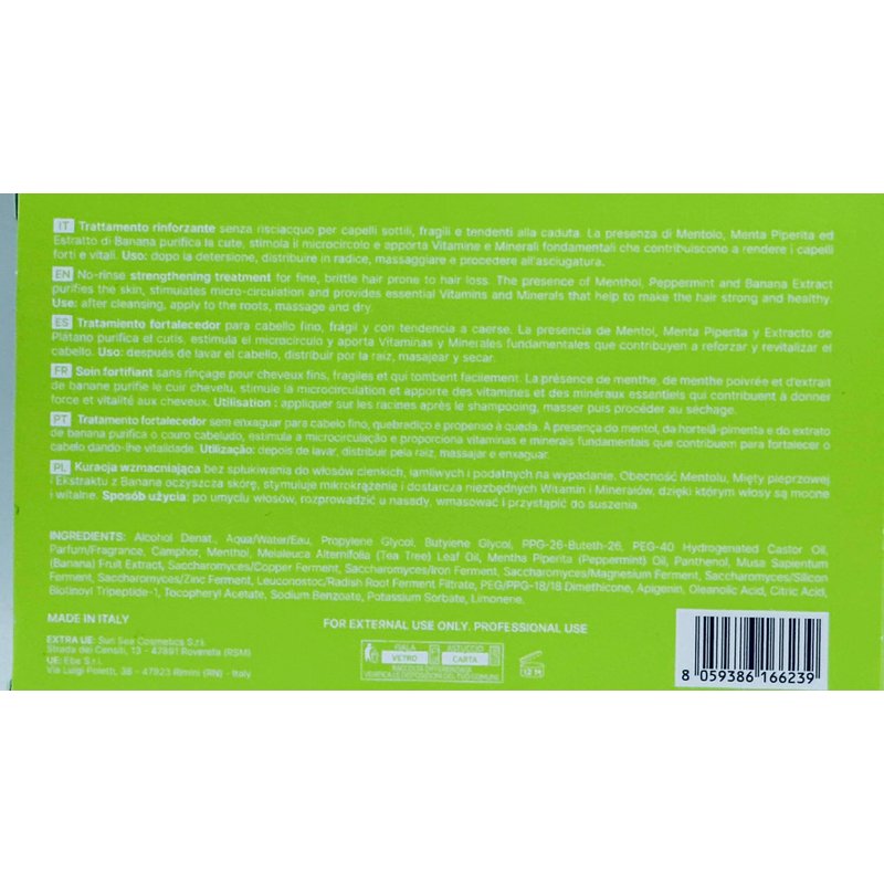 No rinse strengthening treatment for fine, brittle hair prone to hair loss. The presence of menthol, peppermint and banana extract purifies the skin, stimulates micro-circulation and provides essential vitamins and minerals that help to make the hair strong and healthy. Use : after cleansing, apply to the roots, massage and dry.