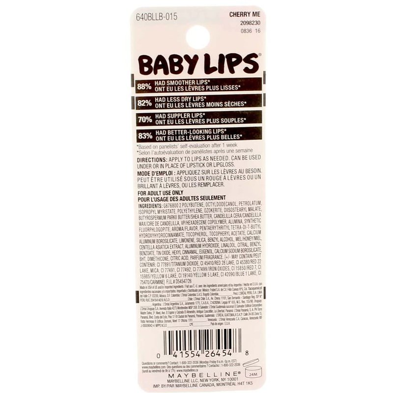 Maybelline Baby Lips Moisturizing Lip Balm , Cherry Me 0.15 oz (Pack of 2)