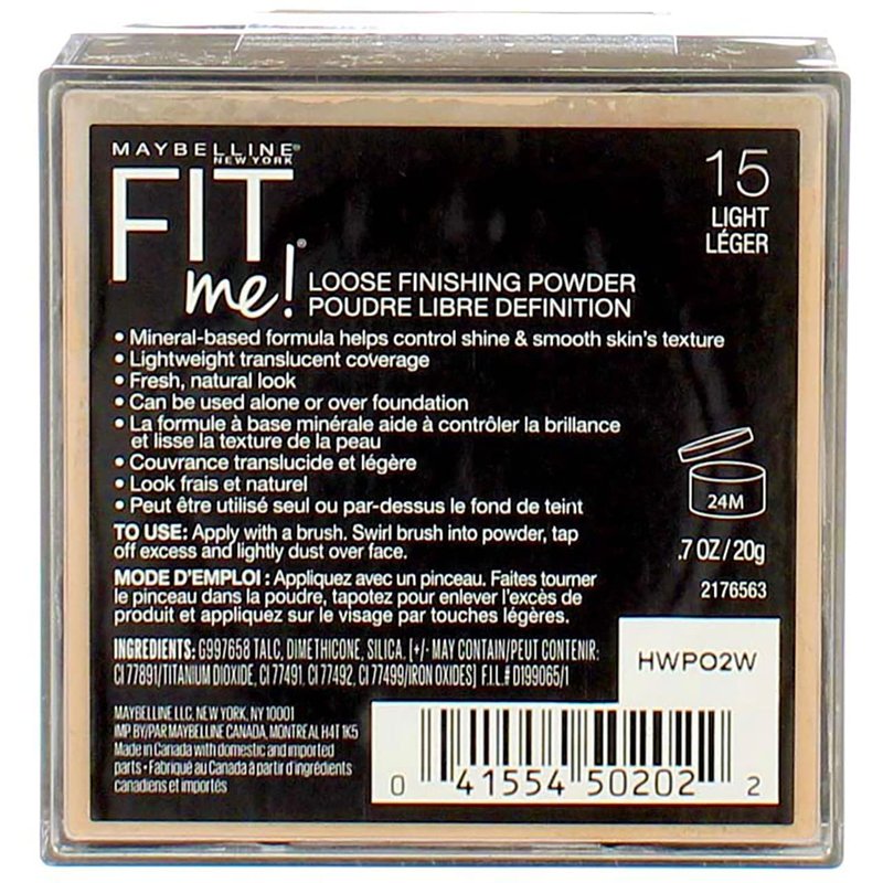 Maybelline Fit Me Loose Finishing Powder, 15 Light, 0.7 oz (Pack of 2)