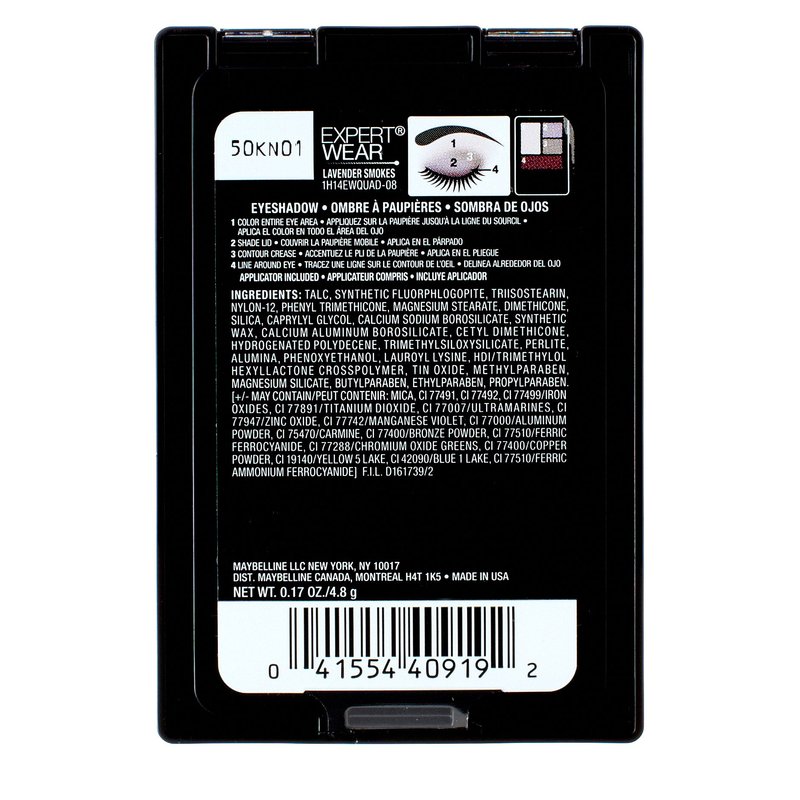 Maybelline New York Expert Wear Eyeshadow Quads, Lavender Smokes, 0.17 oz.