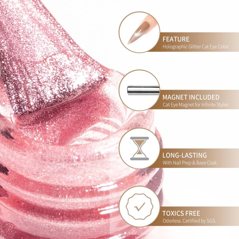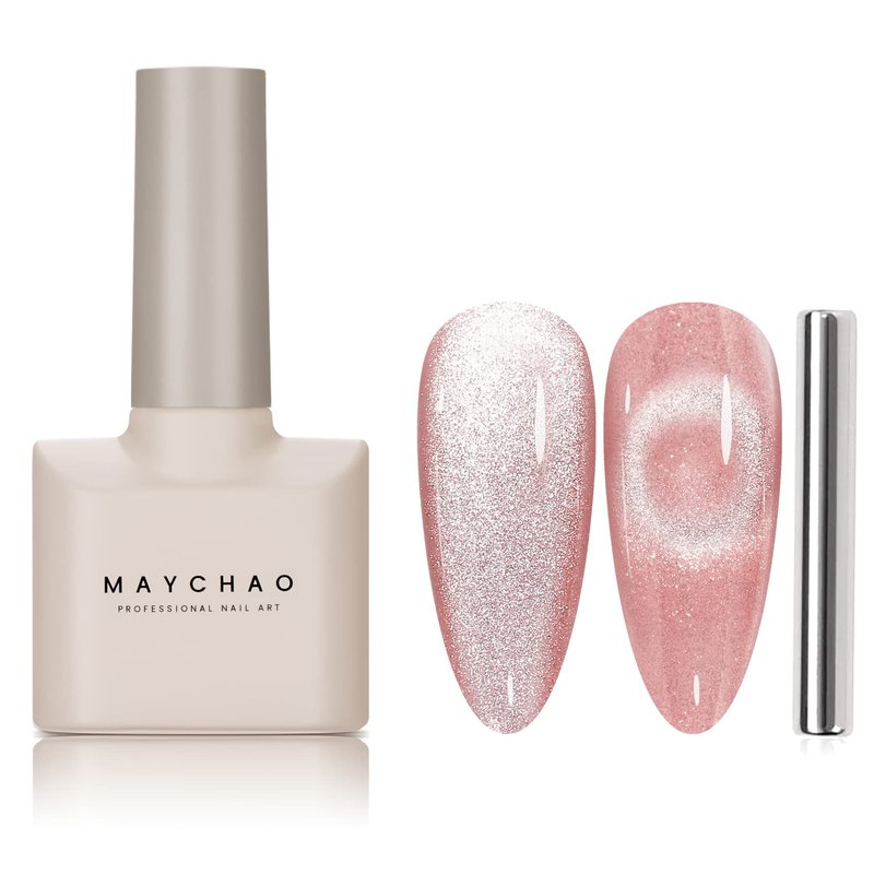 MAYCHAO 15ML Cat Eye Gel Nail Polish 1Pc jelly Pink Nail Polish with Magnet Soak off Holographic Magnetic Gel Polish for Nail Art Manicure Salon DIY at Home, 0.5 OZ