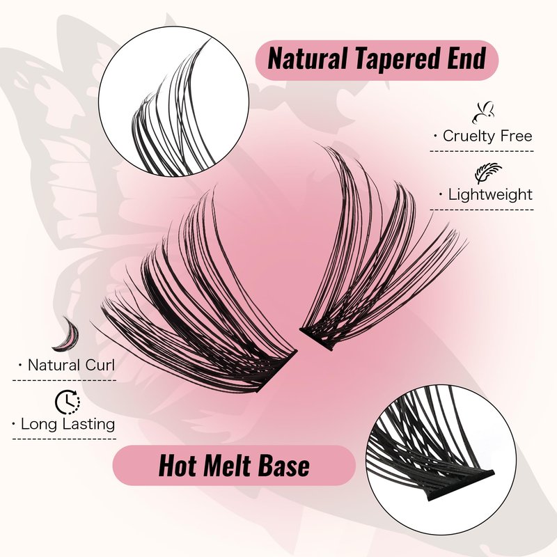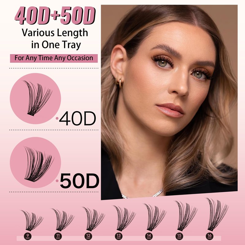 - 【Save Time with Easy Application】Regardless of your makeup experience, you can take advantage of cluster lashes at home and DIY your beauty. Our eyelashes clusters are user-friendly, making it easy to achieve a natural and attractive salon-like lash extension appearance without breaking the bank or taking too much time.