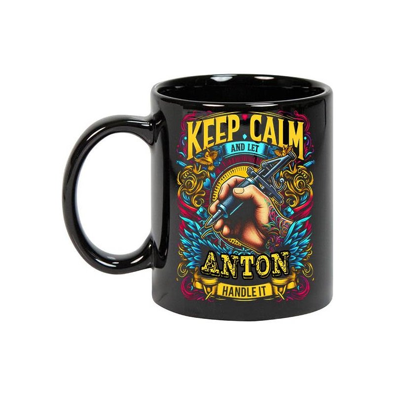 Maynard Ruiz Keep Calm and Let Anton Handle It 11oz Black Mug Personalized Tattoo Artist Coffee Cup, Tattoo Artist Present, Tattoo Artist Gift Ideas, Tattoo Artist Birthday Gifts 465786