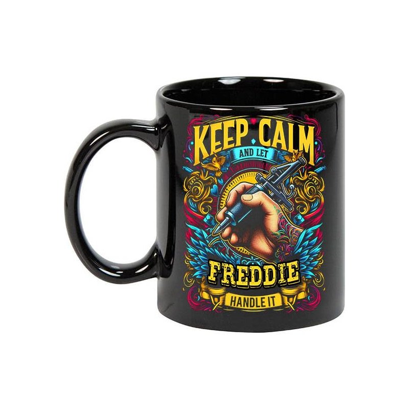 Maynard Ruiz Keep Calm and Let Freddie Handle It 11oz Black Mug Personalized Tattoo Artist Coffee Cup, Tattoo Artist Present, Tattoo Artist Gift Ideas, Tattoo Artist Birthday Gifts 396187