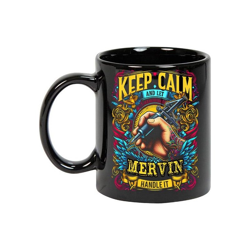 Maynard Ruiz Keep Calm and Let Mervin Handle It 11oz Black Mug Personalized Tattoo Artist Coffee Cup, Tattoo Artist Present, Tattoo Artist Gift Ideas, Tattoo Artist Birthday Gifts 505153