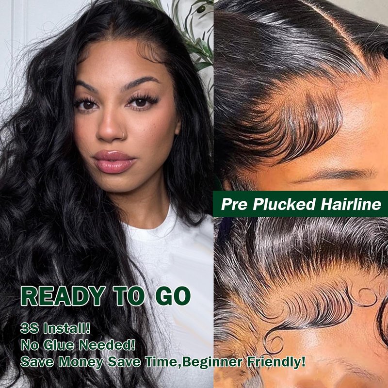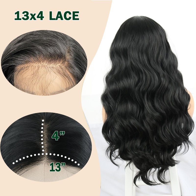 Mayouda Black Body Wave 13X4 hd Lace Front Wig Pre Plucked HD Lace Synthetic Wigs For Black Women Beginner Friendly Long Body Wavy Lace Front Black Synthetic Lace Front Wig