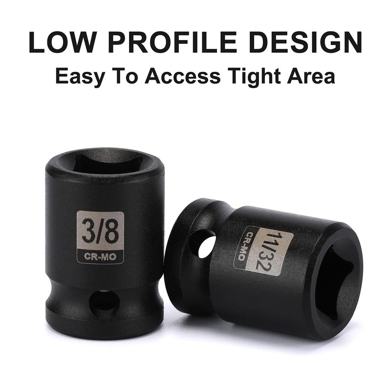 - Includes: 11pcs 3/8"drive SAE pipe plug sockets: male: 3/16", 1/4", 9/32", 5/16", 11/32", 3/8" ; female: 1/4", 9/32", 5/16", 11/32", 3/8"