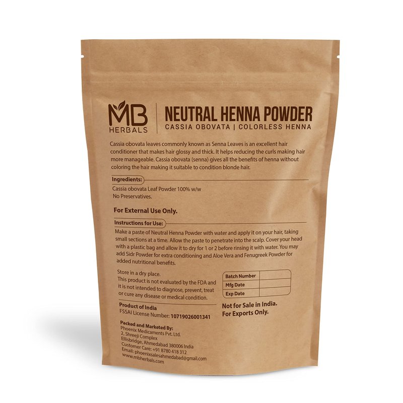 MB Herbals Neutral Henna Powder 227g | Half Pound | Senna Powder | Cassia obovata | Colorless Henna | Natural Hair Conditioner | For Soft Shiny & Healthy Hair