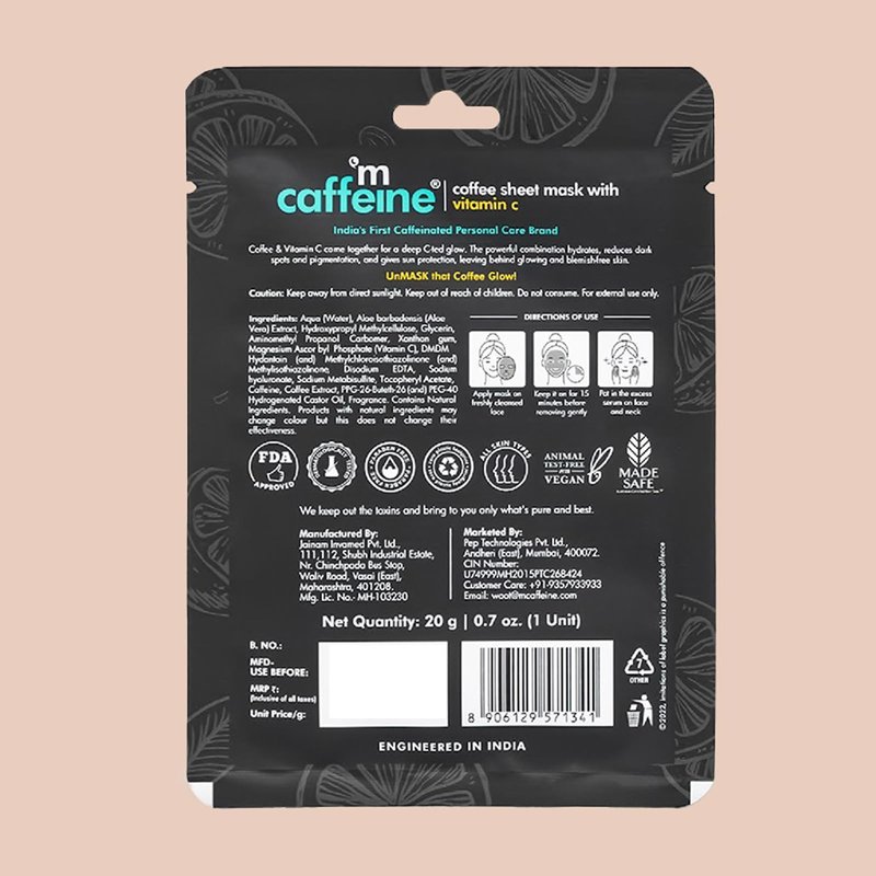 - ADVANCED FACE MASK SKINCARE. This Coffee Sheet Mask with Vitamin C provides an exceptional face mask skincare experience. Packed with antioxidants, it hydrates, reduces dark spots, and pigmentation for a radiant glow.