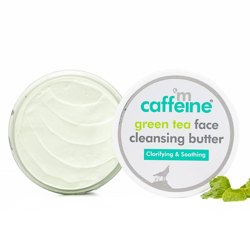 mCaffeine Green Tea Face Cleansing Butter with Shea Butter & Vitamin E| Moisturizing Face Cleanser and Makeup Remover| Cleansing Balm for Waterproof Makeup | Gentle on skin | For All Skin Types - 100g