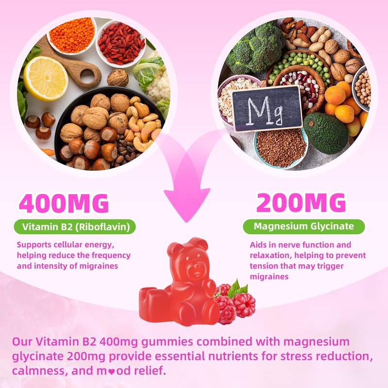 - Multiple Benefits: Experience the benefits of vegan B2 gummies. These B2 riboflavin gummies 400mg can provide migraine relief, enhance energy levels, protect cells from oxidative damage, maintain healthy, youthful skin & improve digestive function