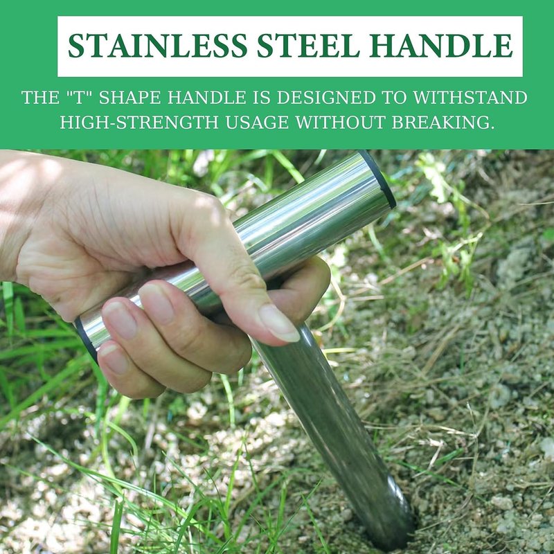 - easily dig holes on earth now without force. "T" shape design allows you to ascending all your force to ground, "needle tip-thicker afterbody design“ can easily break into earth deep without obstruction and create holes on earth.