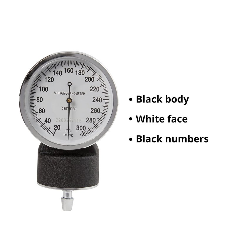 - The white face with black values up to 300 mmHg makes the gauge easy to read and therefore convenient for at-home monitoring